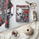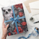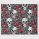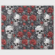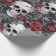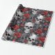 Papel De Regalo Calaveras de acuarela y rosas gris rojo