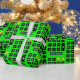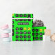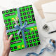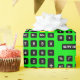 Calculadora verde neón con texto de cumpleaños feliz y botones de teclado negro.