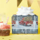 Papel De Regalo Camión Retro Rojo Con Árbol De Navidad En Copos De