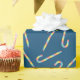 Agrega un toque dulce a tus regalos de Navidades con este papel de envoltura con estampado. Esta envoltura de regalo incluye ilustraciones de latas de caramelo rayado con un fondo azul oscuro.