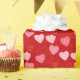Un patrón omnipresente de conversaciones de caramelos que dice "Te amo", "Sé mío", "Bésame", "XOXO" y "Abrazo" en rojo, rosa y rosa que se desliza sobre un fondo rojo de San Valentín