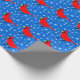 Embalaje exclusivo para regalos para las vacaciones o cumpleaños de invierno. Fondo azul cielo con nieve, y un patrón de cardenales rojo brillante. Por Scarebaby Design.