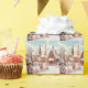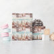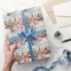 Navidades envolviendo papel con casas de jengibre del pueblo, ideal para regalos de vacaciones de invierno.
