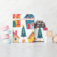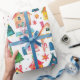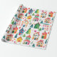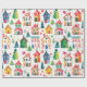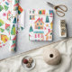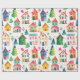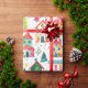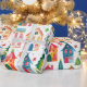 Casas de Navidades amables que son tan festivas y coloridas decoran este rollo de papel envuelto. Escenas divertidas de pequeñas casas festivas en la nieve blanca, en carriles invertebrados con árboles adornados con estrellas. El patrón acuático tiene un origen vintage con un toque retro, tan popular hoy en día.