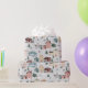 En una pequeña ciudad, la gente camina entre casas cubiertas de nieve y pinos. ¡Un patrón perfecto para los regalos de invierno!