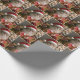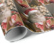 A fluffy cat wearing a Santa hat relaxes in a torn-open gift box, surrounded by a backdrop of softly blurred festive lights that enhance the holiday spirit
