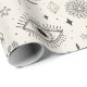 Elegant celestial botanical pattern wrapping paper featuring moons, stars, planets, mystical eyes, and delicate leafy branches in a minimal black and cream style. Ideal for astrology lovers, spiritual seekers, nature enthusiasts, and anyone who loves boho celestial aesthetics.