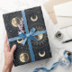 Elegant moon phase and celestial pattern wrapping paper featuring crescent moons, stars, and radiant lunar details on a dark background. Ideal for astrology lovers, moon enthusiasts, spiritual seekers, stargazers, and fans of mystical celestial style.