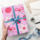 Se trata de cerezas preciosas con arcos y flores retro blancas sobre fondo rosa. Es un lindo papel de envoltura para chicas cumpleaños con tema de cerezo o perrito