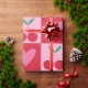 Papel De Regalo Cerezas de cuadros con patrón de corazón rosado