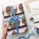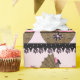 Papel de regalo para fiesta de bebé niña leopardo rosa adorable. Este dulce papel de regalo con tema de leopardo rosa y bebé afroamericana se puede personalizar con tu texto en el estilo de letra y color que elijas.