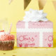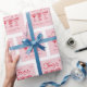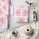 Eleva tu regalo utilizando papel de regalo personalizado que incluya el nombre de la futura novia y la fecha de su evento. El diseño sigue una paleta de colores rojos y rosas de moda con un cuadrado escalopado, elementos dibujados a mano de copas de cóctel, corazones y la palabra "Brindis". Personaliza la plantilla con tus datos de texto. © Kimbellished, LLC