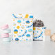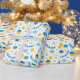 Añade un poco de color y brillo vacacional con este divertido diseño de papel de envoltura de Chanukah. Apropiado para niños o adultos, necesidades de envoltura de regalos corporativos o familiares. Hay bolsas de regalo coordinadas, papel tisular y cinta para una completa apariencia de Chanukah, o puedes mezclar y emparejar con nuestros otros patrones de papel de envoltura de Chanukah. Este diseño es en azul, blanco y dorado con serpentinas, donuts de gelatina y gelt de Chanukah.