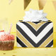 Un elegante papel de regalo diseñado en oro, blanco y negro Chervon para cualquier tipo de regalo ocasional