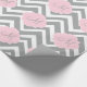 Papel De Regalo Chevron blanco y gris monogramo con rosa pastel