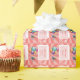 Deliciosa ducha de bebé rosa y blanca Envolviendo Papel con un globo, un bizcocho dulce para dar la bienvenida a una niña.