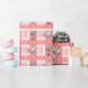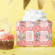 Deliciosa ducha de bebé rosa y blanca Envolviendo Papel con un globo, un bizcocho dulce para dar la bienvenida a una niña.