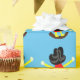 Feliz Chica Sobre El Papel De Envoltura. Niña feliz con ilustracion vectorial oscilante.
