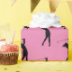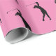 Una silueta de oro Chica cubre la superficie de este papel de envoltura rosa brillante. Ideal para envolver regalos de golf para las mujeres golfistas de su grupo.