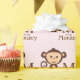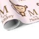 Adorable papel de regalo de baby shower de mono marrón y rosa "M es de Mono". Este dulce papel de regalo de baby shower de mono rosa y marrón se puede personalizar con el color de fondo, color del texto en la fuente y color de su elección.
