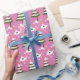 Papel De Regalo Chicas del patrón de árbol de Navidad rosado y nev