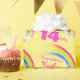 Papel envuelto de cumpleaños en un arcoiris colorido con estrellas y diseño de cielo amarillo. Personalice este documento de cumpleaños de los chicas con su propio nombre y edad de 10 a 19 años. Actualmente se lee Feliz Cumpleaños Kaitlyn 14 hoy. Perfecto para envolver un regalo especial de 14 años. Diseñado exclusivamente por Sarah Trett.