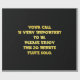 Un mensaje humorístico está escrito en negrita en amarillo contra un fondo negro. Dice: "Su llamada es muy importante para nosotros. Por favor, disfruta de este solo de flauta de 20 minutos".