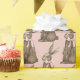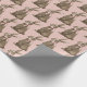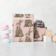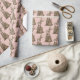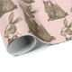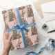 This Easter gift wrap has a hand watercolored chocolate bunny with a pink bow on a pink background.