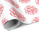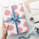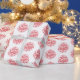 Wrapping paper is shown in a cute Merry Christmas and snowflakes print.