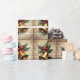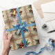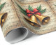 Golden Christmas Bells with red decorative ribbon on a music sheet background.