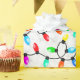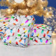 Colorful Christmas string lights with red, orange, yellow, light blue, pink, aqua, and green colors on a black cord in the snow. The retro lights my family used when I was a child inspired me to design this pattern. The snowy background is from an actual photograph. It's shown here on festive gift wrapping paper. Wrap your Christmas gifts with this unique string lights in the snow design!