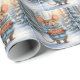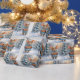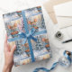 A charming mouse dressed in a cozy blue winter coat, proudly displaying a "Merry Christmas" sign amidst a picturesque snowy forest where delicate snowflakes gently fall