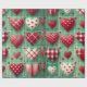 Papel De Regalo Christmas Quilted Hearts Green Red White