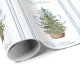 Add a charming touch to your holiday gifts with this personalized wrapping paper featuring a delightful watercolor festive green Christmas tree, adorned with a beautiful blue bow.