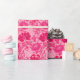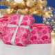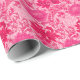 Papel envuelto en un William Morris vintage, Art Nouveau, estampado floral de crisantemos estilizados, realzado digitalmente y colorido, en tonos de fucsia profunda rosa, azalea rosa y borgoña, sobre un fondo rosa pálido