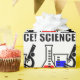 Un producto que muestra el entusiasmo para la ciencia. El diseño muestra un cubilete con una sustancia química azul, un frasco con un líquido rojo. Un microscopio se sienta a la derecha.