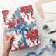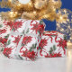 Un papel de envoltura de Navidades con poinsettias rojas pintadas con acuarela, cañas y arcos de pino blanco, brotes de ramas de pino y bayas de invierno rojas en un patrón de reincidencia de celosías. También disponible en tela y papel pintado. Contáctame para más detalles.