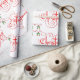 Navidades en Fancy Red Script con Scrolls y papel de envoltura personalizado de cinta verde y blanca. Personalice este papel de ajuste cambiando el color de fondo o apagando la imagen en mosaico por su cuenta.