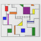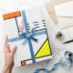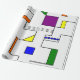 Este papel envolvente tiene un diseño Bauhaus de líneas que van vertical y horizontalmente para hacer una cuadrícula con cuadrados, rectángulos, triángulos y círculos colocados alrededor de la cuadrícula. Si te gusta el diseño pero prefieres colores diferentes, envíame un mensaje.
