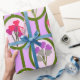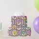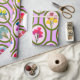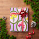 Este papel de envoltura tiene un diseño moderno de mediados de siglo de cuerdas de círculos con ramos de flores en cada círculo.