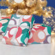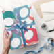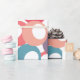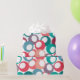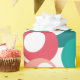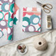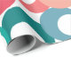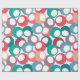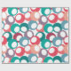 Este papel envolvente tiene un diseño moderno de mediados de siglo de círculos en azul, verde azulado, rosa y berry con ovales blancos dentro.