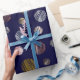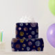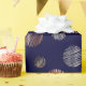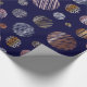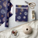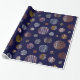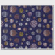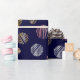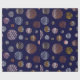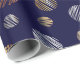 Resumen de los elegantes círculos dorados, rosados, plateados y metálicos de cobre en un patrón impecable con textura de línea de rayas dibujadas a mano aislada en un fondo azul oscuro.