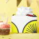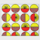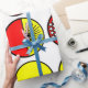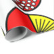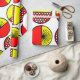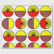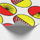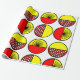Este papel de envoltura tiene un diseño moderno de mitad de siglo de semicírculos, algunos con estallidos, otros con círculos pequeños y otros simplemente sólidos, en rojo y amarillo.
