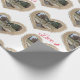 Una hermosa pareja de cisnes rodeados en un corazón marrón decora este papel de regalo de "Love Is..."