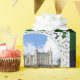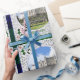 Hermosos Navidades envueltos en papel en honor del antiguo castillo de Dunrobin en Escocia del Clan Sutherland, con un estilo de lata martillo vintage con lías y bayas. El magnífico castillo de Dunrobin, en el norte de Escocia, ha sido el hogar del poderoso clan de Sutherland durante siglos. Es una hermosa estructura y es capturada de Moray Firth en esta fotografía. Una inscripción discreta, "Dunrobin Castle, Sutherland Clan" identifica la imagen redonda. Enmarcar la foto es un fondo cuadrado, blanco, martillado-metalizado-aparente. Los marcos pintados de blanco están decorados con hojas verdes y bayas rojas pintadas en cada esquina. Los marcos de repetición se colocan en un tartán de clanes de Sutherland de verdes, azules, rojos y blancos, todo perfecto para las vacaciones. Difunde un poco de felicidad y herencia familiar esta temporada.