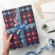 Papel De Regalo Classic Navy Red Plaid Snowflakes Christmas
