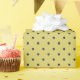 A fresh take on a classic polka dot pattern in dark blue and gentle, warm yellow.
