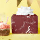 G Clef entre notas de música en un rojo profundo. El fondo rojo oscuro hace que aparezcan las notas blancas brillantes. Diseño de música blanca y marrón,