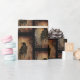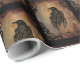 Raven sobre el fondo de las baldosas de piedra. Los engranajes del reloj alrededor del borde.