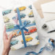 Obtén nostalgia con nuestra colección de papel de envoltura de diseño de coches vintage. Estos diseños coloridos y únicos son perfectos para cualquier ocasión y le darán un toque retro a sus regalos.